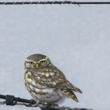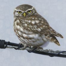 ‘The Owl and the Ladybird’. -Little Owl. Taken form an original acrylic on canvas painting the same size as this fine art print.
