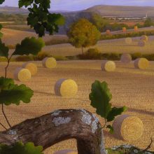 This is reproduced from an original Acrylic on board painting looking south towards Ross-On-Wye in Herefordshire, and May Hill in Gloucestershire on the left, England.